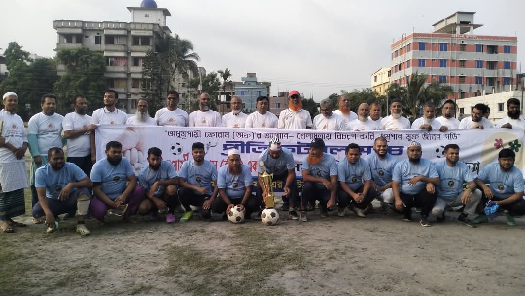 "খেলা ধুলোয় বিচরণ করি ধুমপান মুক্ত জীবন গড়ি" শ্লোগানে উচ্ছসিত প্রানবন্ত ও মুখরিত খেলায় অংশ গ্রহণ করে অধূমপায়ী ফোরাম (অফ) একাদশ ও নয়া দিগন্ত প্রিয়জন সমাবেশ একাদশ।