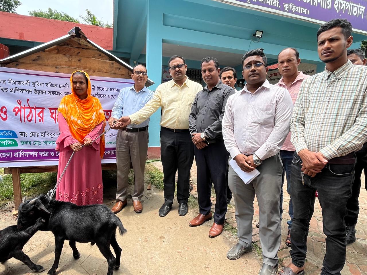 কুড়িগ্রামের ভূরুঙ্গামারীতে উপজেলা প্রাণিসম্পদ দপ্তর ও ভেটেরিনারী হাসপাতাল কর্তৃক দরিদ্র ও সুবিধাবঞ্চিত খামারিদের মাঝে উন্নত জাতের পাঁঠা ছাগল এবং ছাগলের ঘর বিতরণ করা হয়েছে।