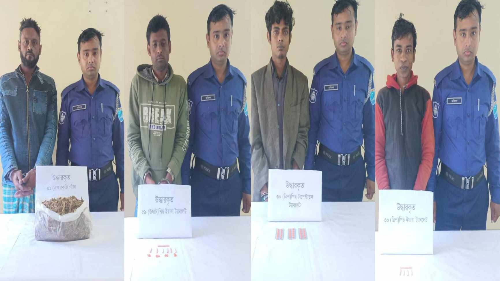 রাজবাড়ীর পাংশা মডেল থানা পুলিশের ভিন্ন ভিন্ন অভিযানে ১ কেজি গাজা, ৮৯ পিছ ইয়াবা ট্যাবলেট ও ৩০ পিছ ট্যাপেন্টাডল ট্যাবলেটসহ চার মাদক ব্যবসায়ী গ্রেফতার। বুধবার ২০ ডিসেম্বর দিবাগত রাতে উপজেলার বিভিন্ন স্থানে অভিযান চালিয়ে মাদকদ্রব্য সহ চারজন মাদক ব্যবসায়ীকে গ্রেফতার করেছে পাংশা মডেল থানা পুলিশ। গ্রেফতারকৃত মাদক ব্যবসায়ীরা হলেন, একই উপজেলার কলিমহর ইউনিয়নের প্রানপুর গ্রামের মৃত আজিমউদ্দিন শেখের ছেলে মোঃ মাসুদ শেখ (১ কেজি গাজা), নারায়নপুর গ্রামের মোঃ ছাকেন শেখের ছেলে মোঃ জীবন শেখ (৩০ পিছ টাপেন্টাডল ট্যাবলেট), জীবননালা গ্রামের মোঃ আফছার মন্ডলের ছেলে মোঃ মজিবর রহমান ( ৩০ পিচ ইয়াবা ট্যাবলেট) ও জয়গ্রামের মোঃ ওয়াজেদ সর্দারের ছেলে রিপন সর্দার (৫৯ পিছ ইয়াবা ট্যাবলেট। পাংশা মডেল থানা পুলিশ বলেন, উক্ত আসামীদের বিরুদ্ধে পাংশা মডেল থানায় মাদকদ্রব্য নিয়ন্ত্রণ আইনে নিয়মিত মামলা রুজু করে অদ্য ২০ ডিসেম্বর ২০২৩ তারিখে আসামীদেরকে বিজ্ঞ আদালতে প্রেরণ করা হয়েছে।