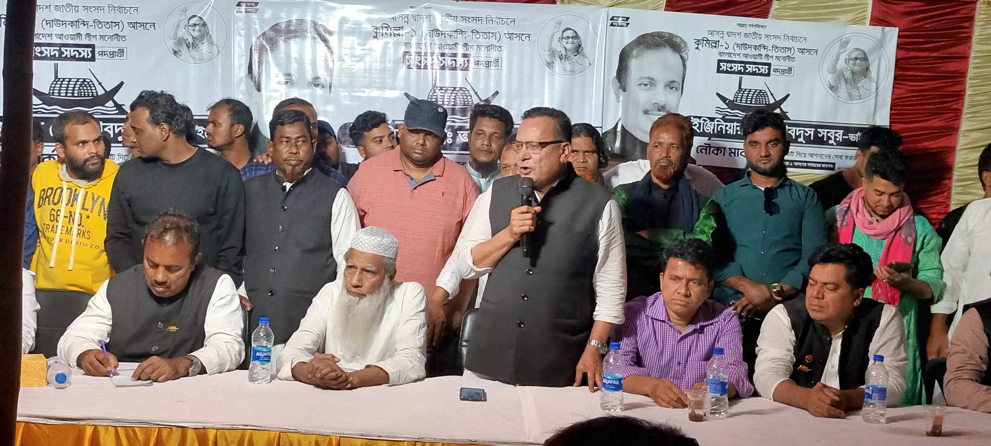 এসময় নৌকার প্রচারণার জন্য আওয়ামী লীগের নেতৃবৃন্দ উপস্থিত ছিলেন,