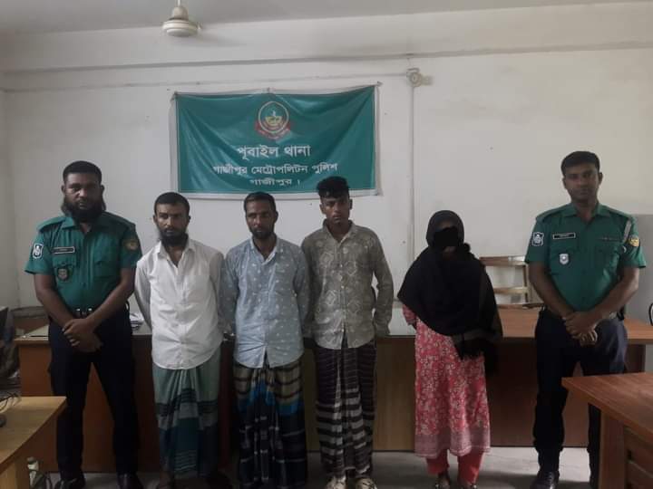 ২। শেরপুর জেলার শ্রীবর্দী থানার বালুঘাট এলাকার মোঃ আবুল কালাম আজাদ এর ছেলে মোঃ হুমায়ুন কবির (১৯), ৩। শেরপুর জেলার শ্রীবর্দী থানার বালুঘাট এলাকার মোঃ আবুল কালাম আজাদ এর মেয়ে মোসাঃ কারিমা (২২) বর্তমানে জিএমপি পূবাইল থানার ৪১নং ওয়ার্ড এর সাতানীপাড়া এলাকার (গফুরের বাড়ীর ভাড়াটিয়া) এবং ৪। শরীয়তপুর জেলার নড়ীয়া থানার আইটপাড়া গ্রামের মোঃ বাবুল এর ছেলে মোঃ লিটন (৪৬). বর্তমানে জিএমপি পূবাইল থানার ৪১নং ওয়ার্ড এর সাতানীপাড়া এলাকার ভাড়া থাকেন।