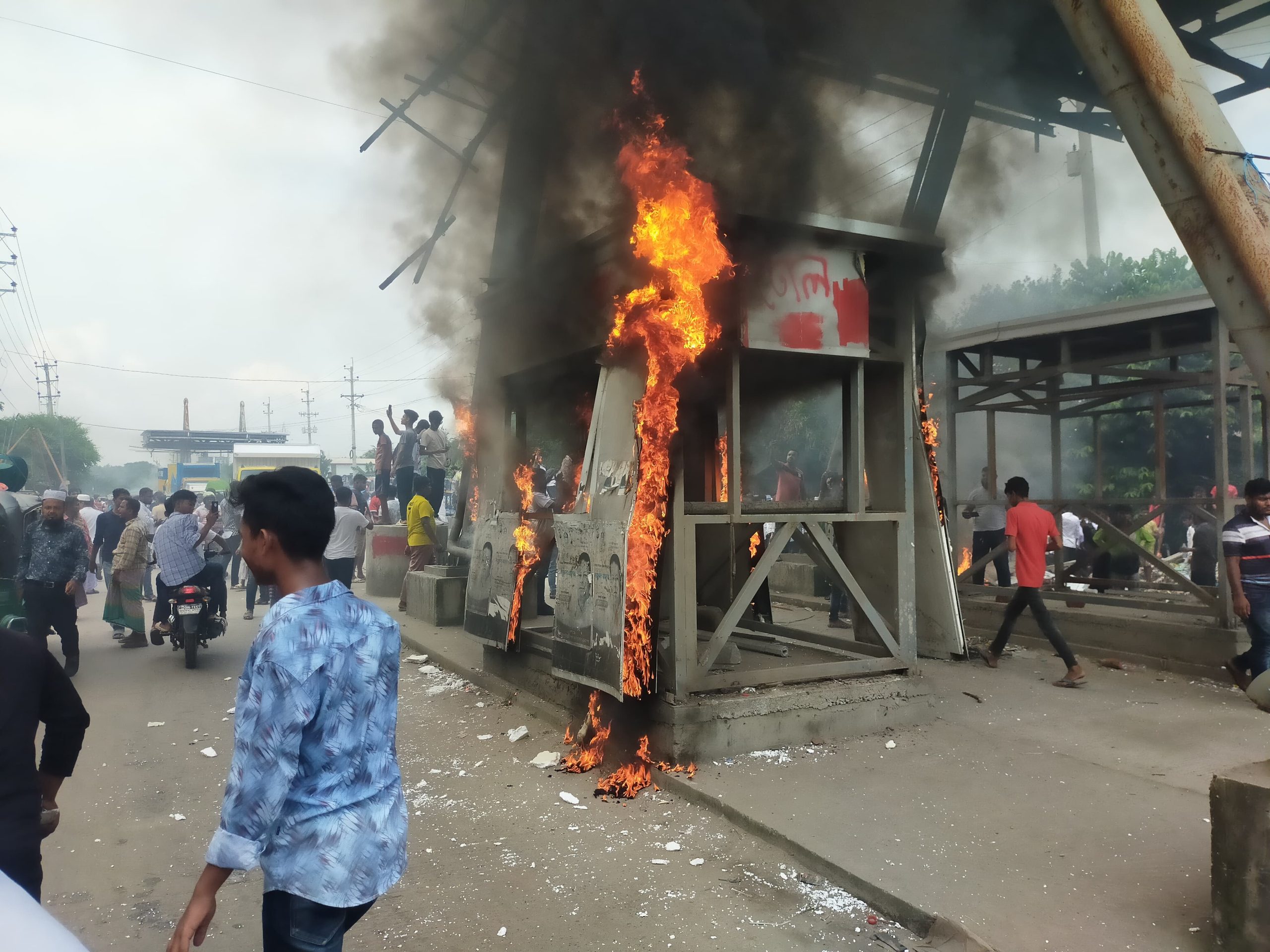 এদিকে, বৃহস্পতিবার (১২ সেপ্টেম্বর) সকালে টোল আদায় বন্ধে বৈষম্যবিরোধী ছাত্র-জনতার ব্যানারে টোল প্লাজায় বিক্ষোভ সমাবেশের আয়োজন করা হয়। কর্মসূচি অনুযায়ী প্রথমে ছাত্র-জনতা ওই টোল প্লাজায় বিক্ষোভ সমাবেশ ও মিছিল করে। এক পর্যায়ে টোল আদায়ের টিকিট কাউন্টারে বিক্ষুদ্ধ জনতা হামলা চালিয়ে ভাঙচুর করে এবং অগ্নিসংযোগ করে। এ সময় হেমায়েতপুর টু সিংগাইর আঞ্চলিক মহাসড়কে প্রায় একঘণ্টা যান চলাচল বন্ধ থাকে।