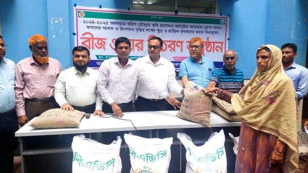 সিরাজগঞ্জে প্রান্তিক কৃষক-কৃষাণীদের মাঝে বিনামূল্যে পাটবীজ ও সার বিতরণ